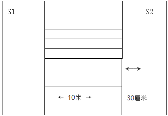 場(chǎng)地器材:10米長(zhǎng)的直線跑道若干,在跑道的兩端線(S1和S2)外30厘米處各劃一條線(圖1)。木塊(5厘米×10厘米)每道3塊,其中2塊放在S2線外的橫線上,一塊放在S1線外的橫線上。秒表若干塊,使用前應(yīng)進(jìn)行校正。