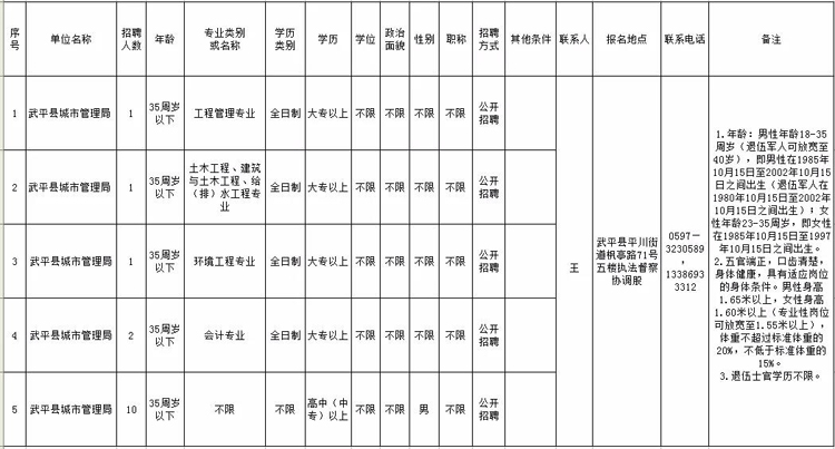 4.本招聘簡章的最終解釋權(quán)歸武平縣城市管理局。