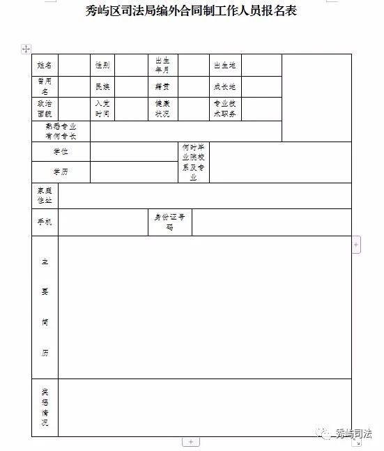 附件:秀嶼區(qū)司法局編外合同制工作人員報名表