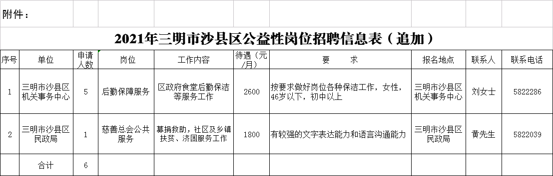 2021年三明市沙縣區(qū)招聘全區(qū)公益性崗位(區(qū)機(jī)關(guān)事務(wù)中心與區(qū)民政局)通告