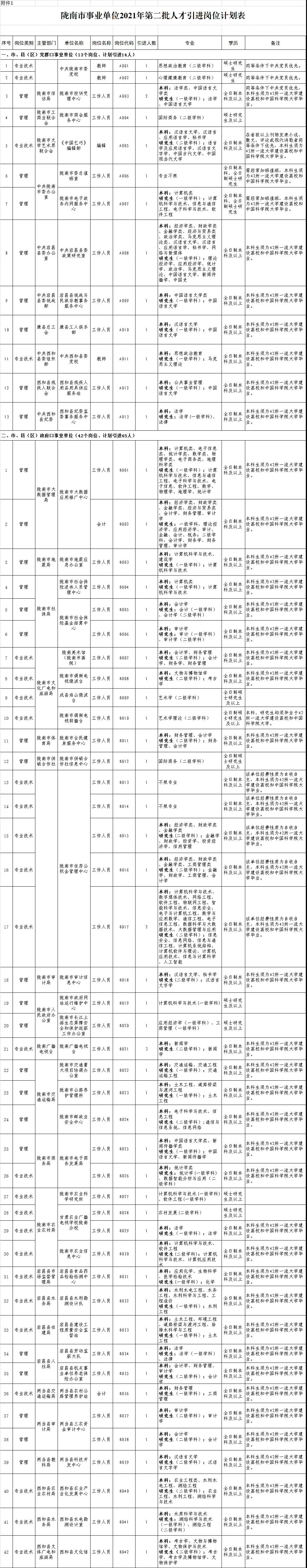 附件:1.隴南市事業(yè)單位2021年第二批人才引進崗位計劃表