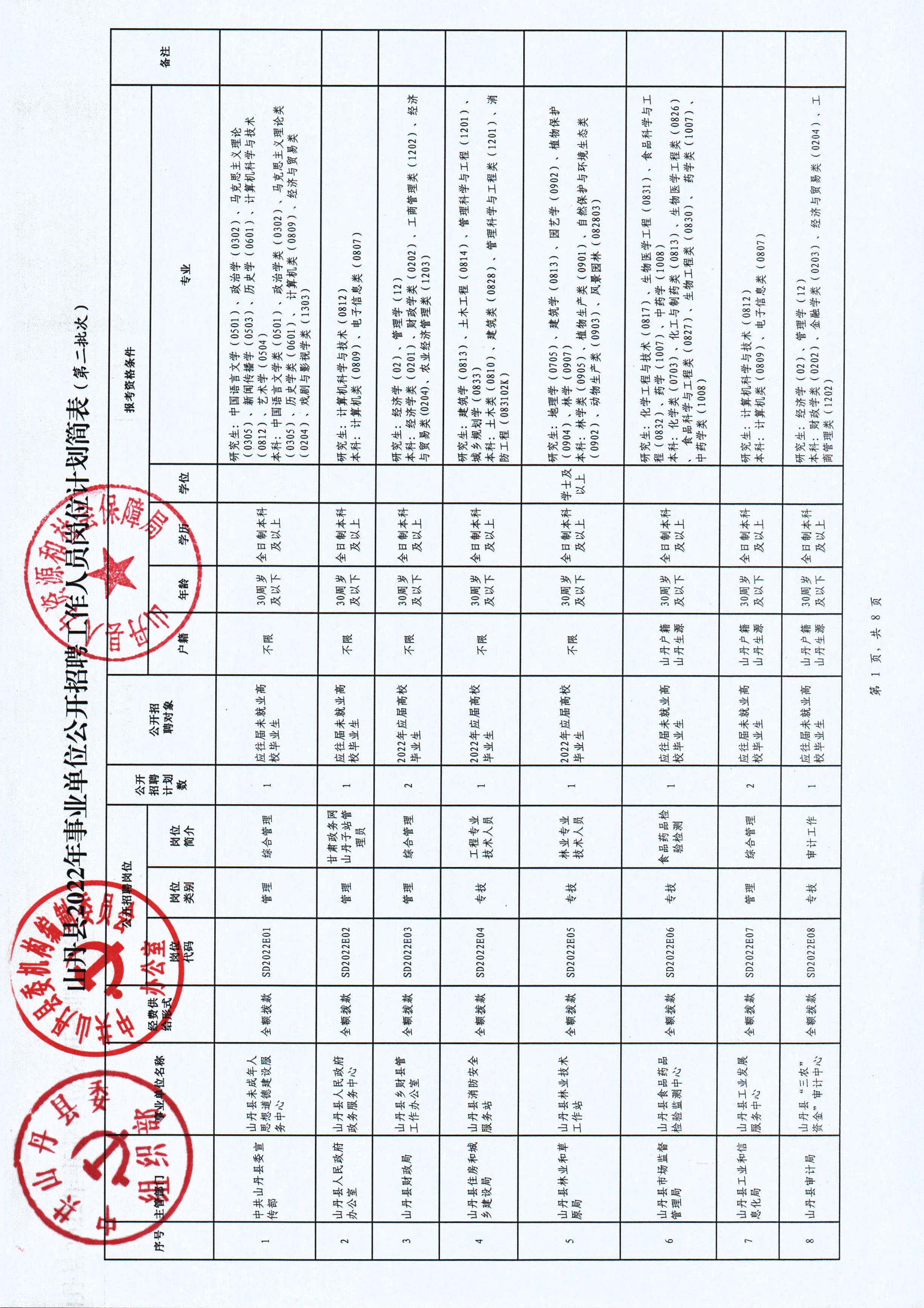 2022年張掖山丹縣事業(yè)單位公開招聘工作人員公告(第二批次)