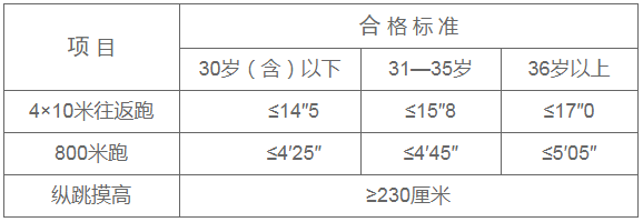 報(bào)考人員須參加全部三項(xiàng)體能測(cè)評(píng),其中兩項(xiàng)達(dá)標(biāo)方為合格,如放棄一項(xiàng)則視為不合格。體能測(cè)評(píng)合格的方可進(jìn)入下一環(huán)節(jié)。