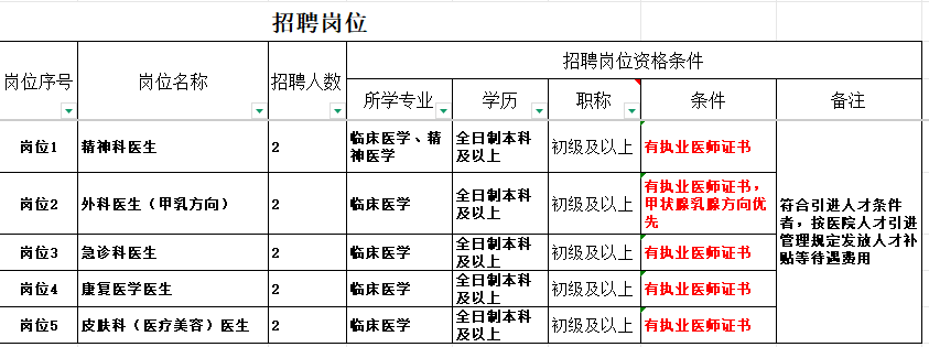 根據(jù)醫(yī)院業(yè)務發(fā)展需求,現(xiàn)向社會公開招聘以下崗位人員,具體招聘事宜如下: