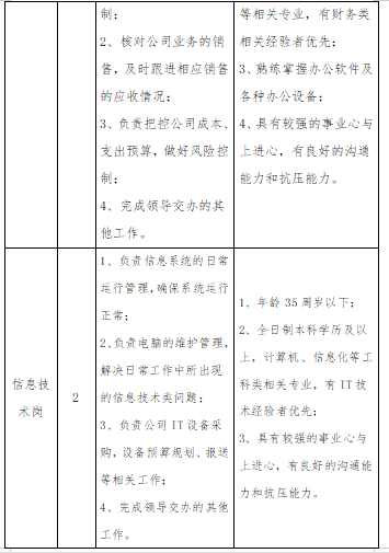 (二)我司有權(quán)根據(jù)崗位需求變化及報(bào)名情況等因素,調(diào)整、取消或終止個(gè)別崗位的招聘工作,并對(duì)本次招聘享有最終解釋權(quán)。