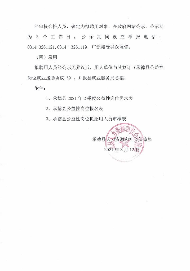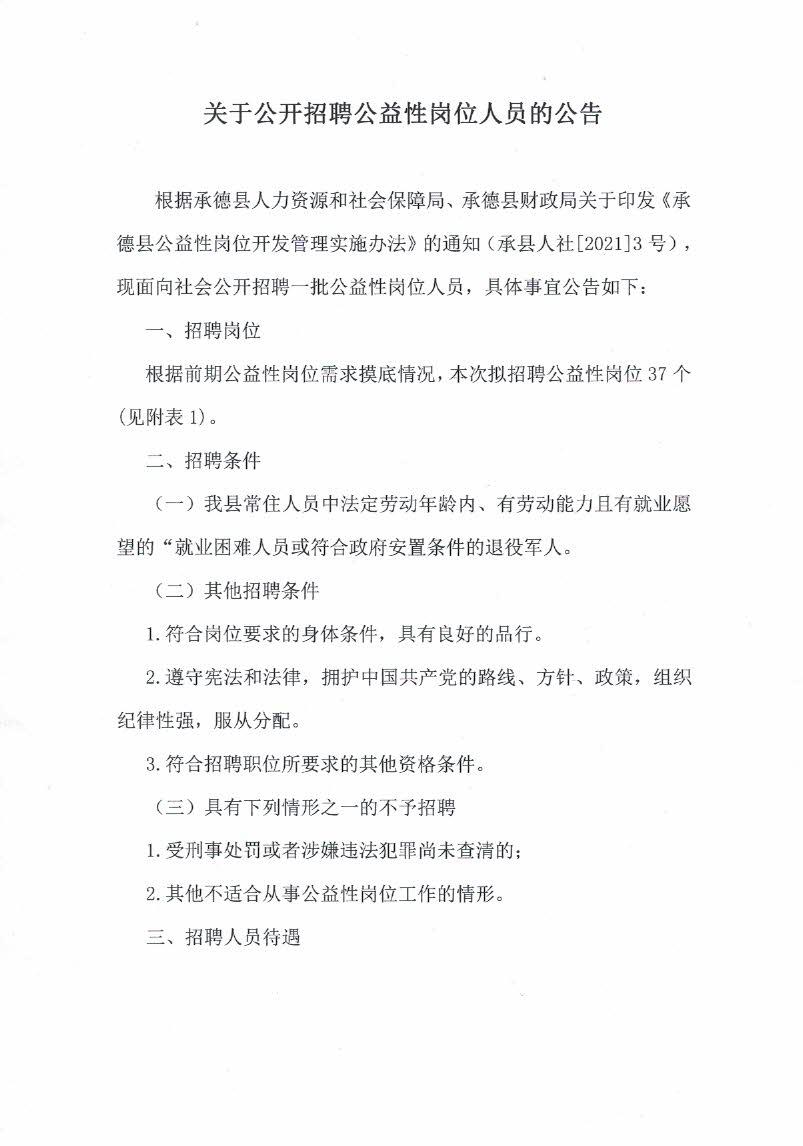 2021年承德市承德縣公開招聘公益性崗位人員公告