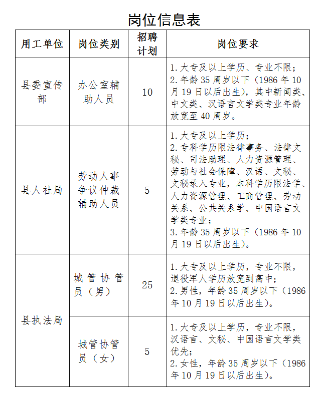 (一)本次招聘僅限2021年4月7日以前進(jìn)入全縣機(jī)關(guān)、事業(yè)單位,在編制部門備案且在崗的人事代理和勞務(wù)派遣人員報(bào)考,教育、衛(wèi)生、公安(含消防)以及社區(qū)辦編外人員不在本次招聘范圍;