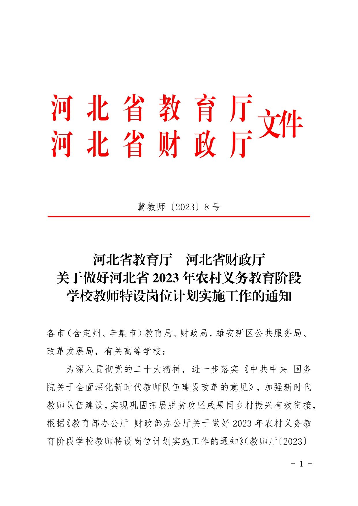 2023-06-19 17:01:32閱讀()河北特崗教師招聘服務(wù)平臺(tái)關(guān)于做好河北省2023年農(nóng)村義務(wù)教育階段學(xué)校教師特設(shè)崗位計(jì)劃實(shí)施工作的通知