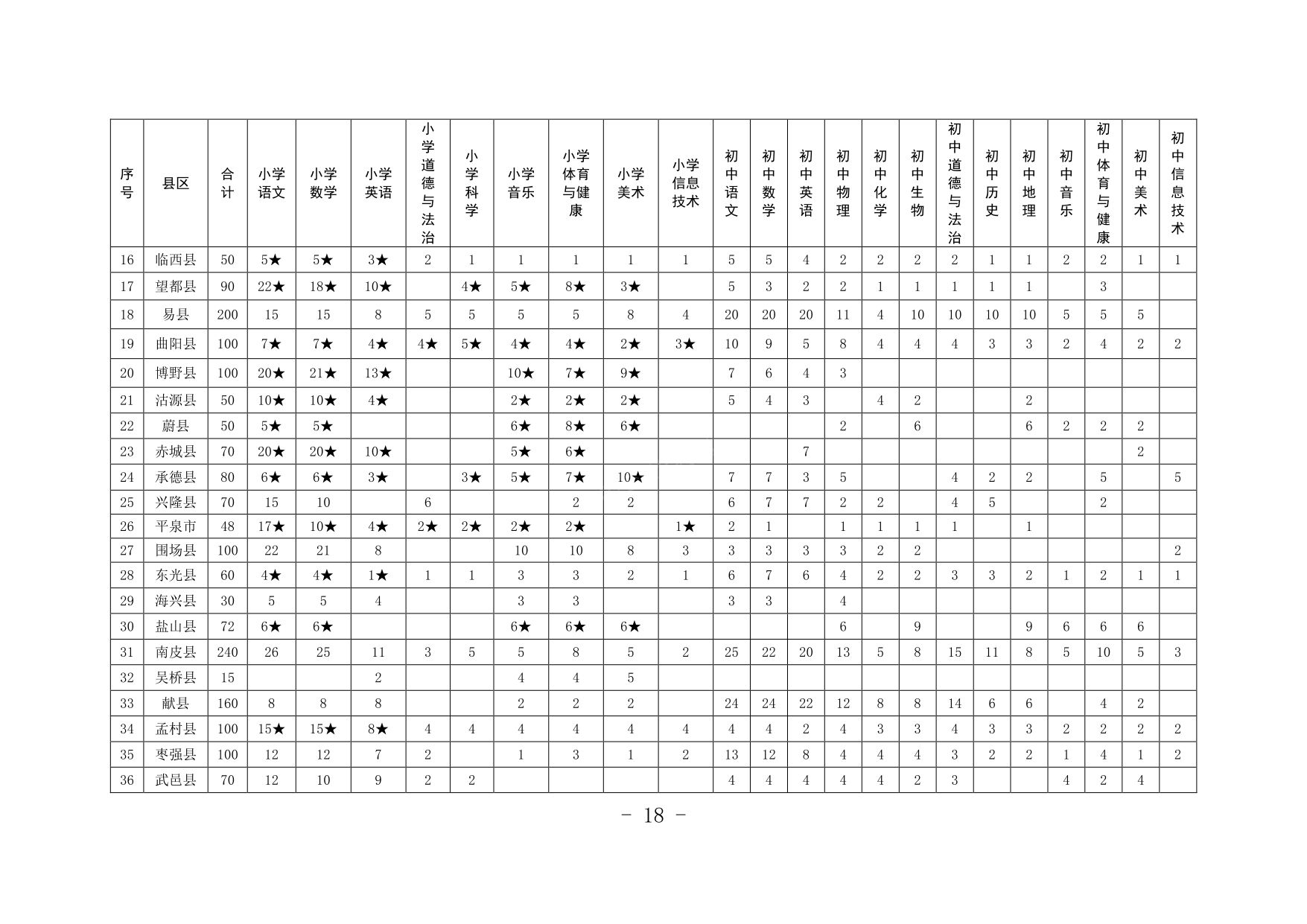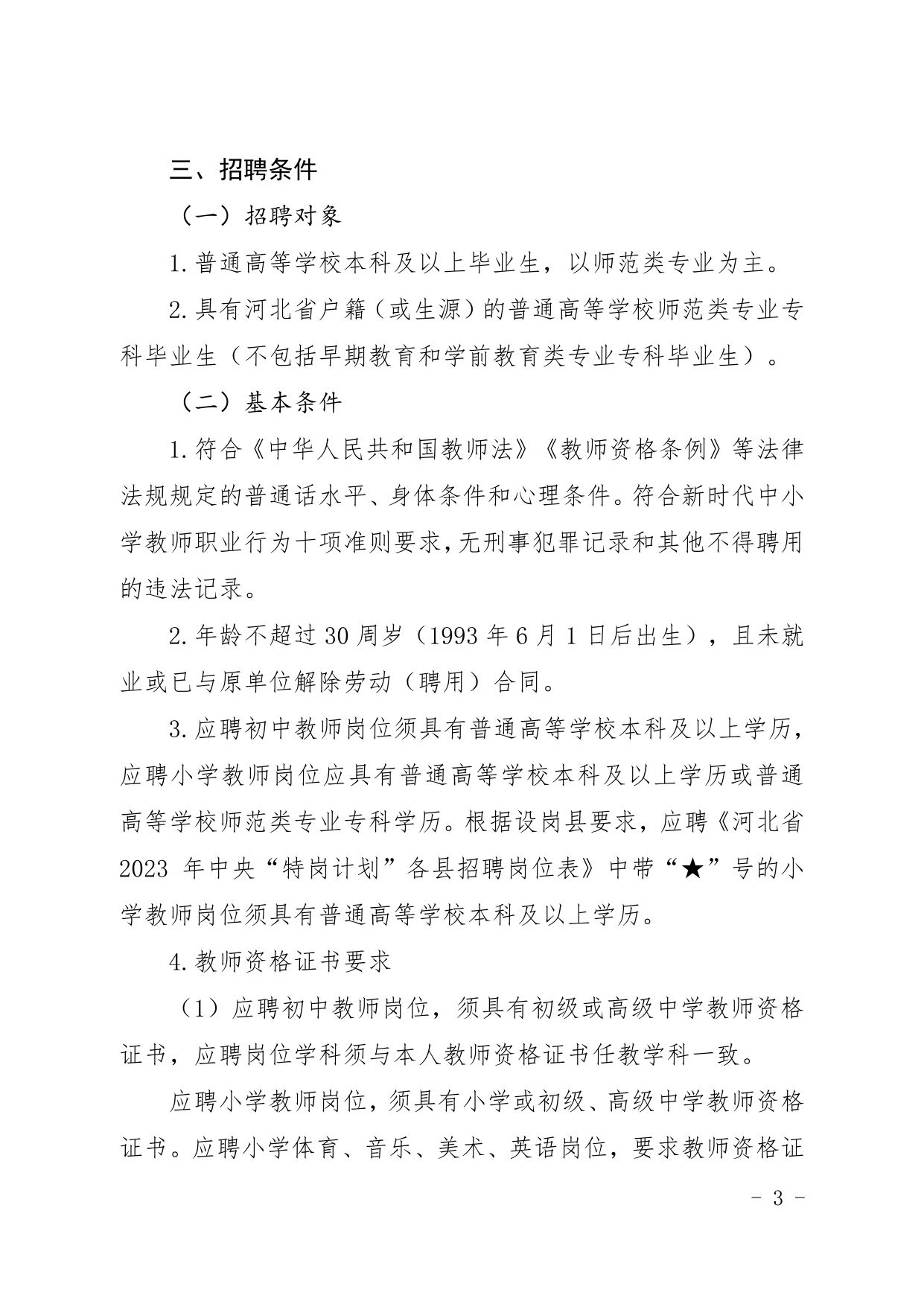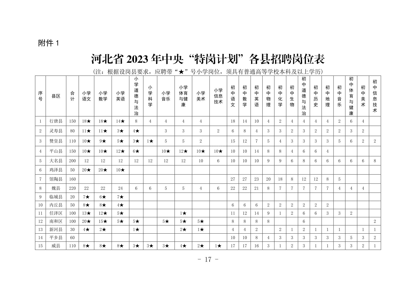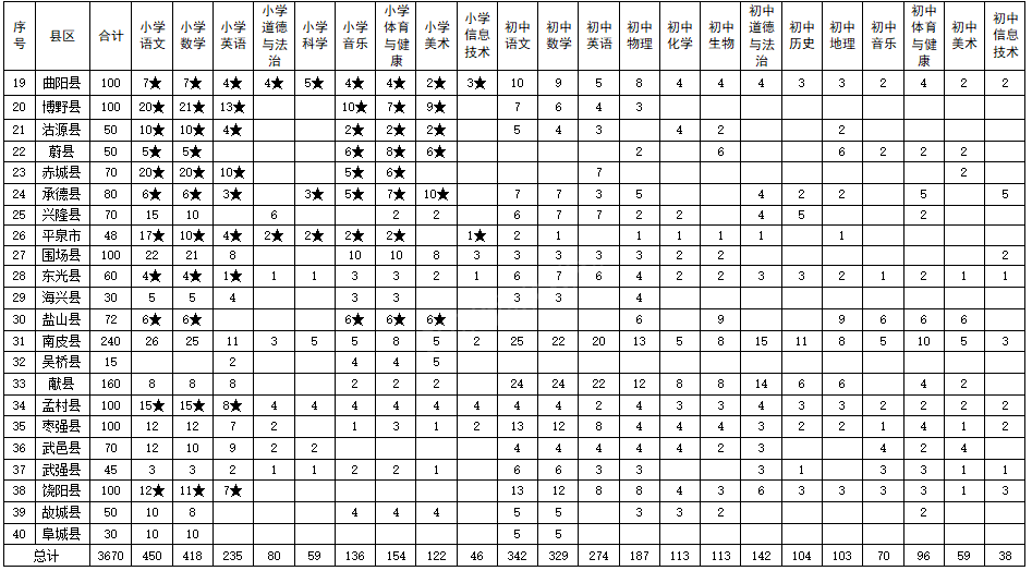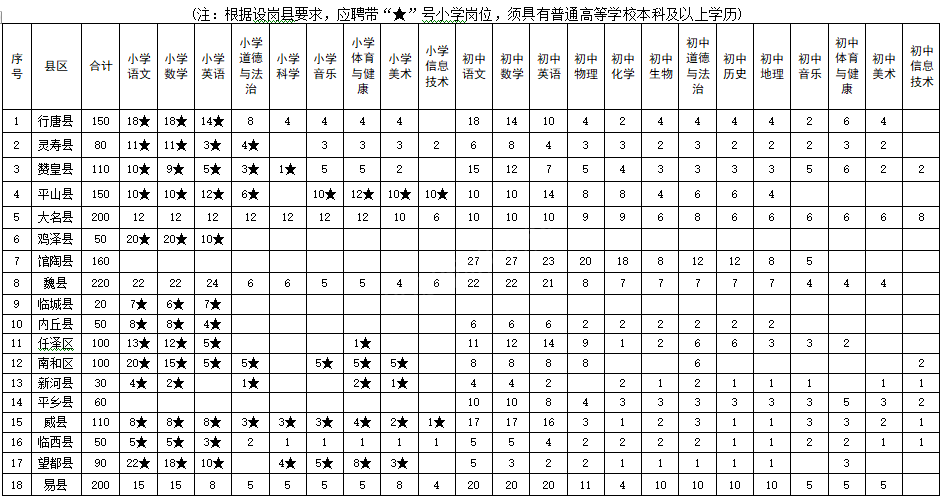 河北省2023年中央“特崗計(jì)劃”各縣招聘崗位表