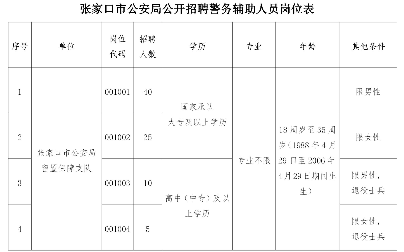 附件:《張家口市公安局公開招聘警務(wù)輔助人員崗位表》