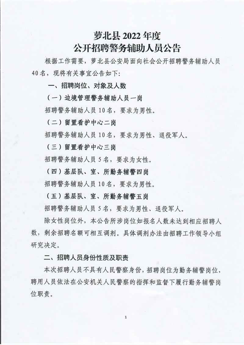 2022年鶴崗蘿北縣公開招聘警務輔助人員公告