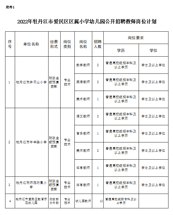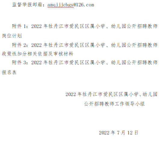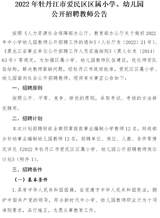 2022年牡丹江市愛民區(qū)區(qū)屬小學(xué)、幼兒園公開招聘教師公告