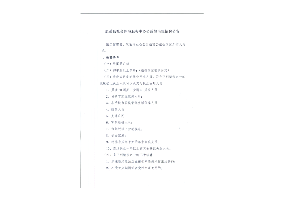 2024年懷化辰溪縣社會保險服務(wù)中心公益性崗位招聘公告