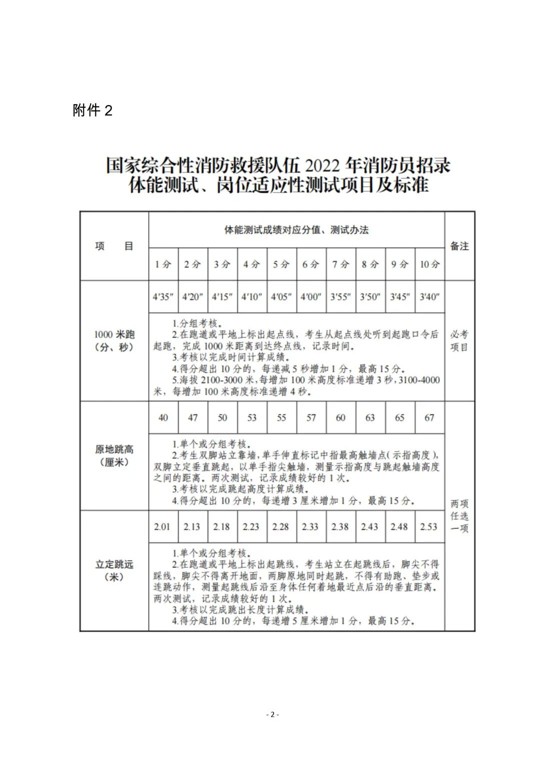 附件2:國家綜合性消防救援隊伍2022年消防員招錄體能測試、崗位適應(yīng)性測試項目及標準