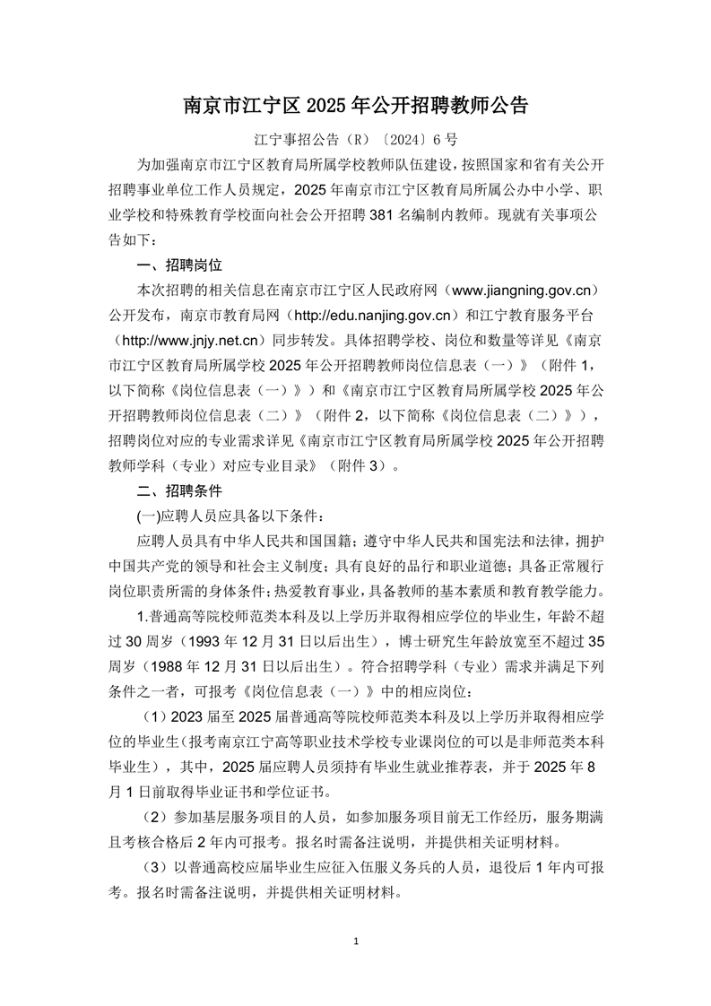 2025年南京市江寧區(qū)公開(kāi)招聘教師公告