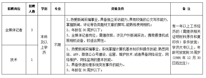 3、報名注意事項:采取現(xiàn)場報名方式。報名時須提供近期免冠同底版1寸正面彩色照片3張、本人身份證、畢業(yè)證書、學(xué)位證書、工作經(jīng)歷證明和其他相關(guān)證件原件、復(fù)印件及其他證明材料(如署名完成的新聞作品、美術(shù)設(shè)計作品、新媒體作品等)。填寫《鹽城市鹽都區(qū)融媒體中心2021年公開招聘工作人員報名表》(見附件)一式兩份。在規(guī)定時間內(nèi),如本人現(xiàn)場報名有困難的,可委托他人代為報名,代報名人須提供本人身份證及報考者需提供的報名材料。