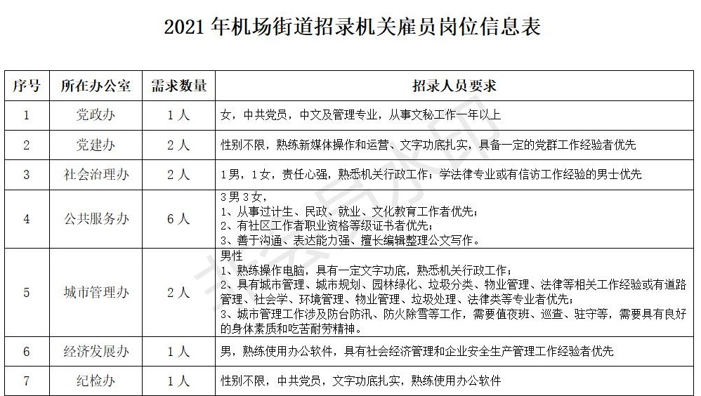 附:《2021年機(jī)場(chǎng)街道招錄機(jī)關(guān)雇員崗位信息表》