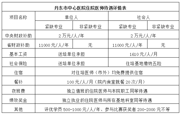 3.醫(yī)院為學員培訓提供多方面保障,包括國家、省、醫(yī)院、科室補助、夜班費等,且與面向社會招收學員簽署勞動派遣合同,繳納五險,待遇詳見下表。