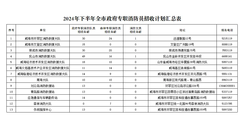 2024-10-11 09:49:26閱讀()威海公共招聘網(wǎng)為做好2024年政府專職消防員招聘工作,進(jìn)一步充實(shí)全市消防救援隊(duì)伍實(shí)力,現(xiàn)面向社會(huì)公開招聘,招聘公告如下: