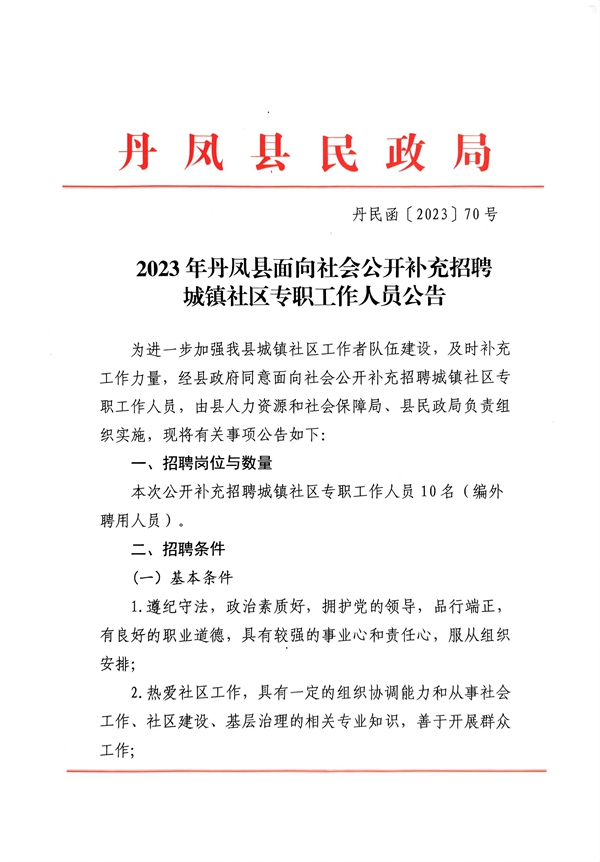 2023年商洛丹鳳縣面向社會公開補充招聘城鎮(zhèn)社區(qū)專職工作人員公告