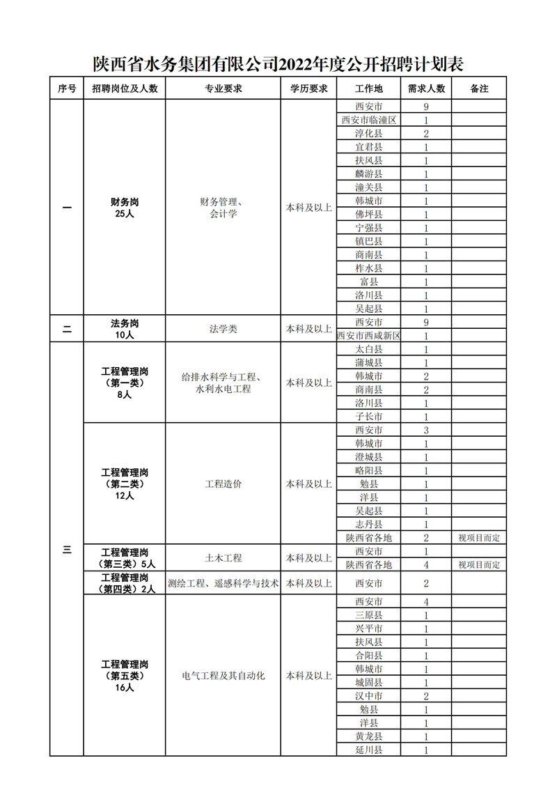 附件:《陜西省水務(wù)集團(tuán)有限公司2022年度公開招聘計(jì)劃表》