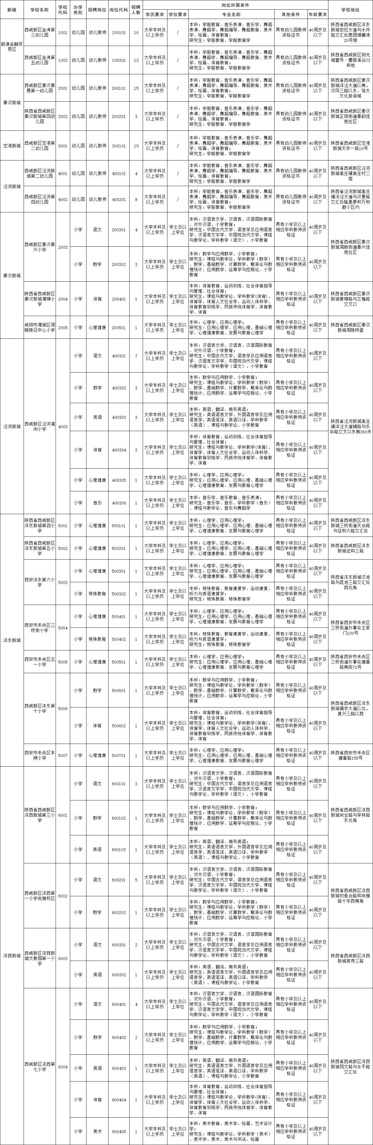 西咸新區(qū)2025年教育系統(tǒng)公開招聘崗位需求一覽表(教師崗位190人)