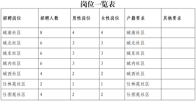 本次招聘用工形式為勞務(wù)派遣。聘用人員與我公司簽訂勞動合同,派駐到陵川縣七社區(qū)(城南、城北、城東、城西、城內(nèi)、仕圖苑、仕林苑)工作。