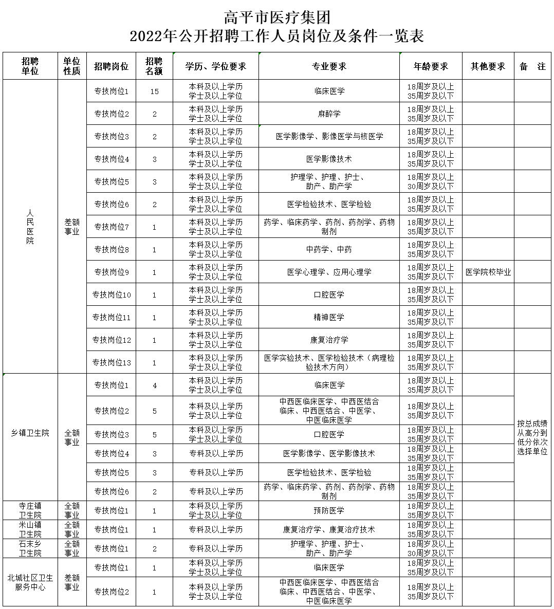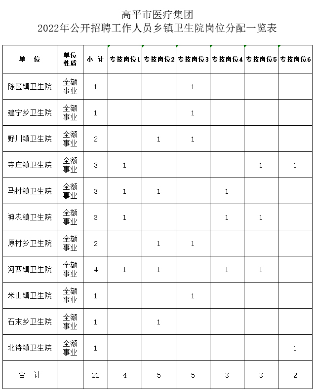 2.高平市醫(yī)療集團2022年公開招聘鄉(xiāng)鎮(zhèn)衛(wèi)生院專技崗位分配一覽表