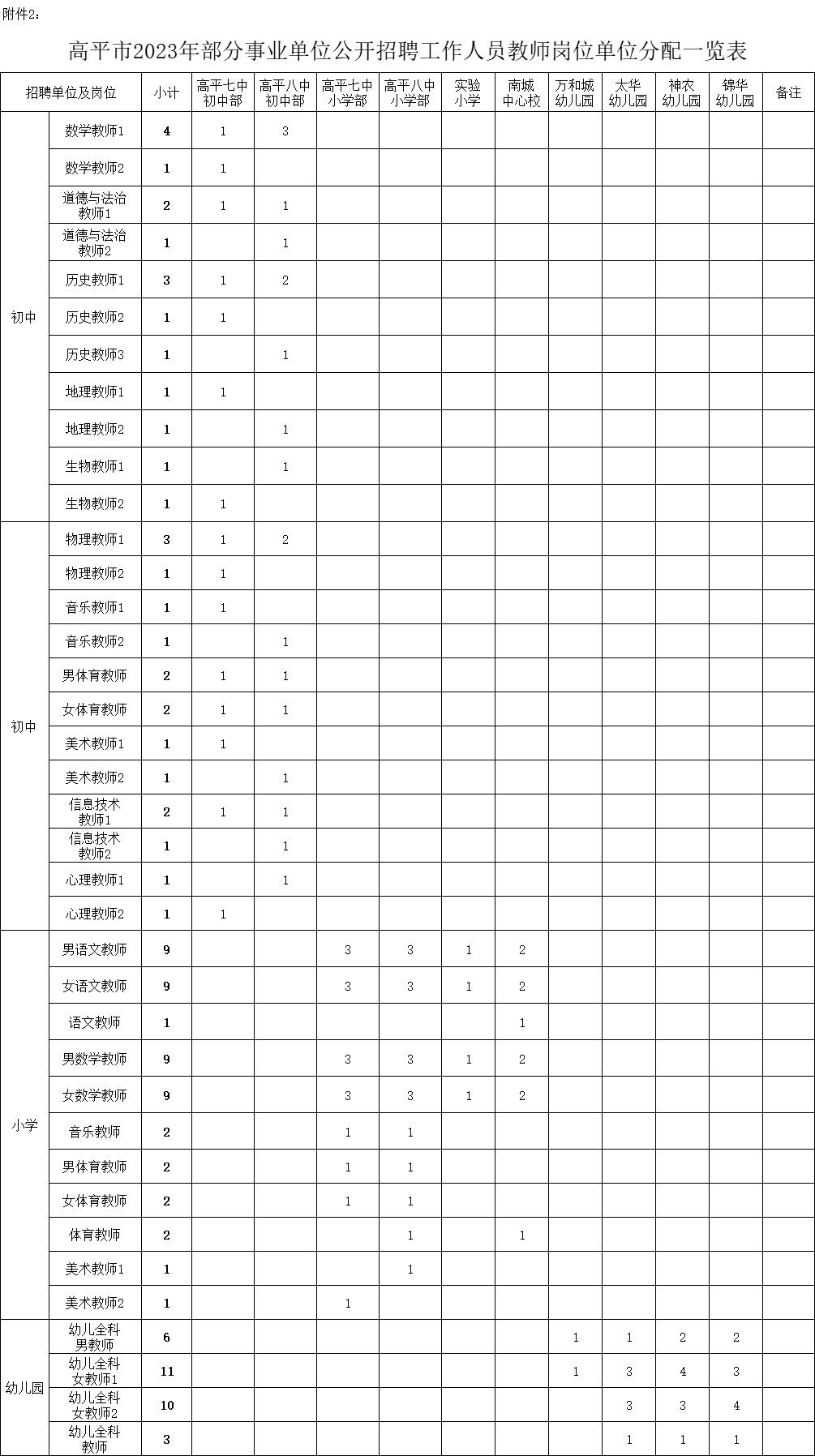 2.《高平市2023年部分事業(yè)單位公開招聘工作人員教師崗位單位分配一覽表》