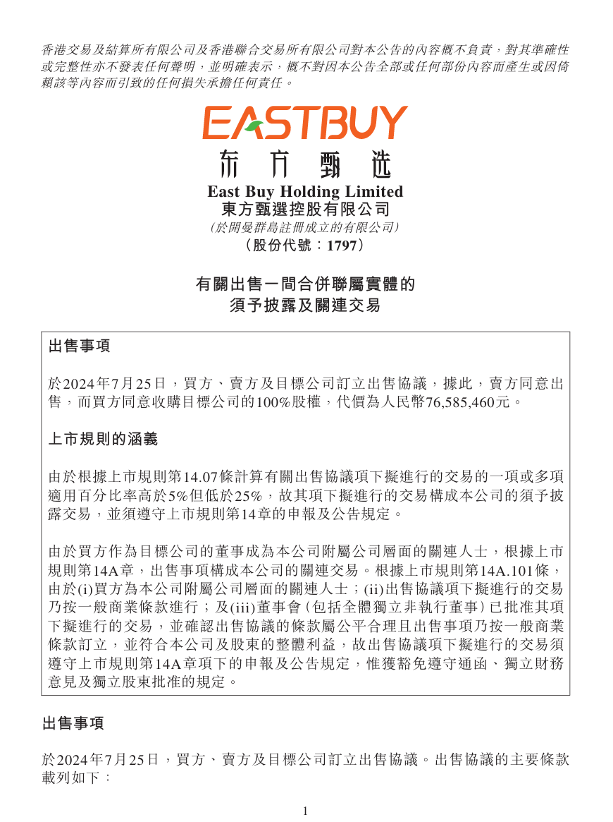 董宇輝(買方)、北京新東方迅程網(wǎng)絡(luò)科技有限公司(賣方)及與輝同行(北京)科技有限公司(目標(biāo)公司)訂立出售協(xié)議,據(jù)此,賣方同意出售,而買方同意收購(gòu)目標(biāo)公司的100%股權(quán),代價(jià)為人民幣7658.55萬(wàn)元。