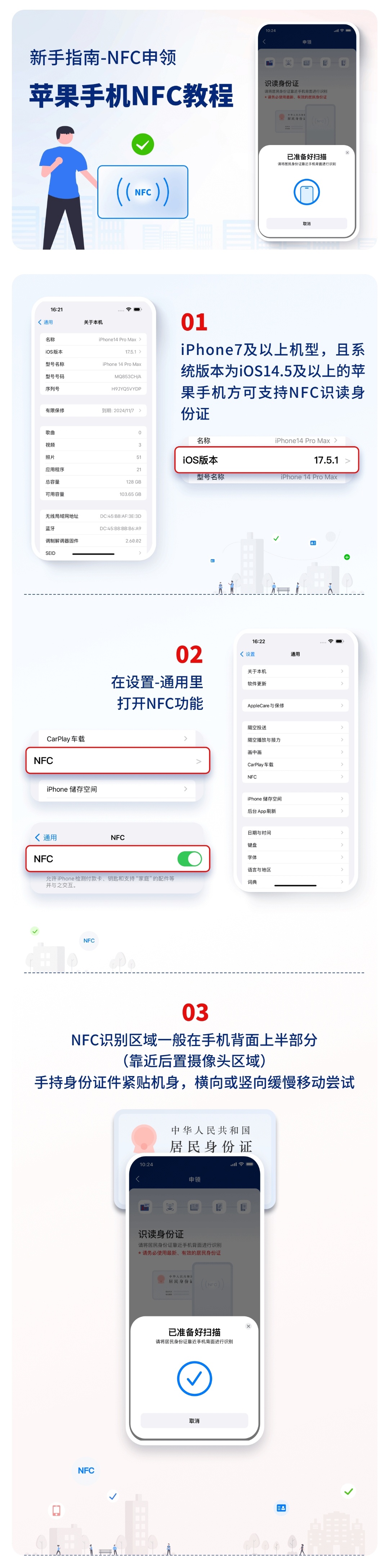申領(lǐng)網(wǎng)證需要一部有 NFC 功能的手機(jī)(iOS或安卓),進(jìn)行證件NFC識別和人臉識別,然后關(guān)聯(lián)手機(jī)號、設(shè)置8位數(shù)字口令,即可申領(lǐng)成功。