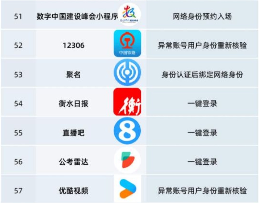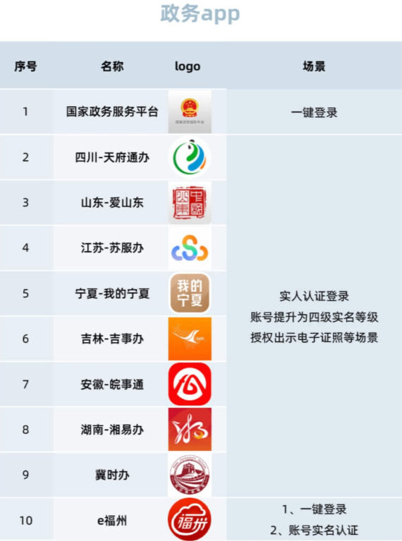 目前,國家網(wǎng)絡(luò)身份認(rèn)證公共服務(wù)正處于試點(diǎn)階段,已上線試點(diǎn)App和場景共67個,包括部分政務(wù)App和互聯(lián)網(wǎng)App,如國家政務(wù)服務(wù)平臺、中國鐵路12306、淘寶、微信、小紅書、QQ等,附官方支持名單如下: