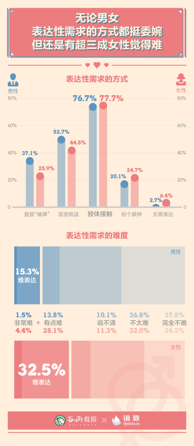 有32.5%女性和15.3%男性都覺得難以向伴侶表達性需求。