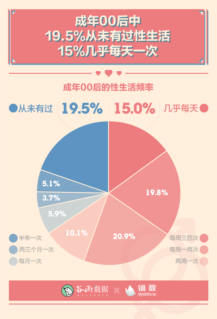 調(diào)查顯示,有80.5%的成年00后已經(jīng)有過性生活,其中15%的性生活頻率達到每天一次。