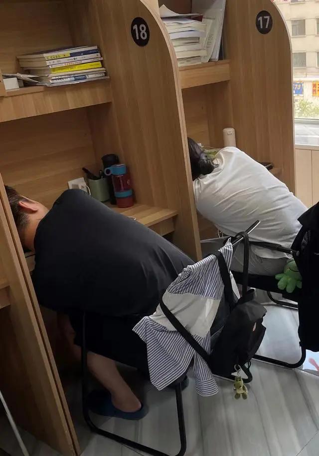 ▲兩位備考年輕人正在自習(xí)室睡覺