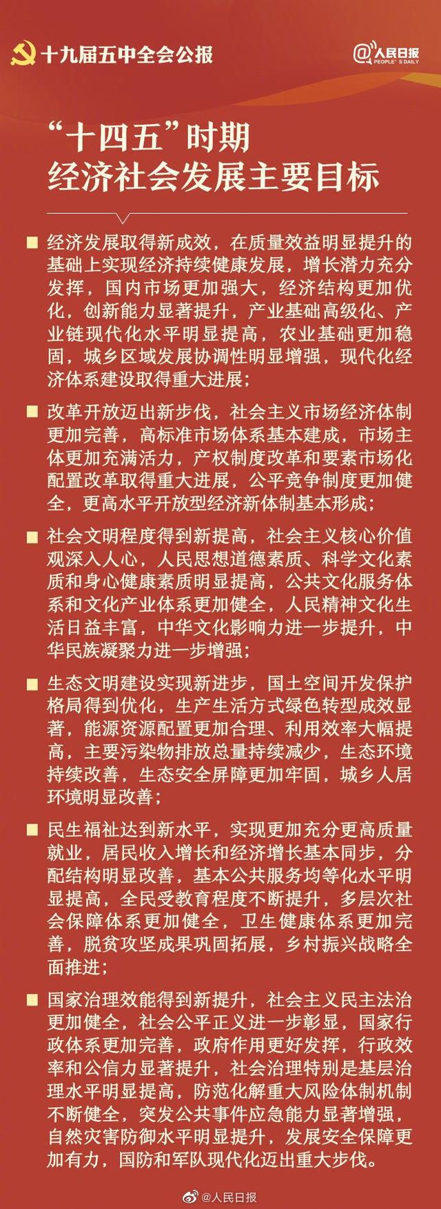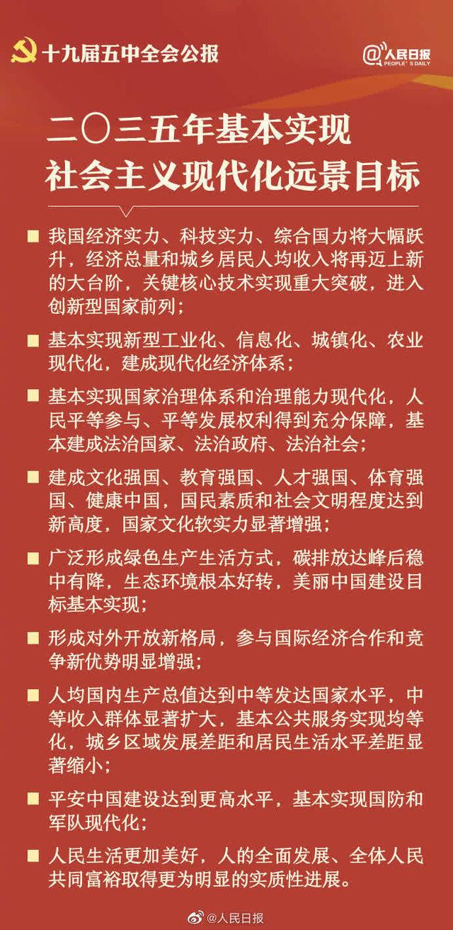 10月29日,中國共產(chǎn)黨第十九屆中央委員會第五次全體會議公報發(fā)布。全會高度評價決勝全面建成小康社會取得的決定性成就,提出了到二〇三五年基本實現(xiàn)社會主義現(xiàn)代化遠(yuǎn)景目標(biāo)以及“十四五”時期經(jīng)濟(jì)社會發(fā)展主要目標(biāo)。中國將如何實現(xiàn)這一宏偉藍(lán)圖,14個關(guān)鍵詞速讀五中全會公報。