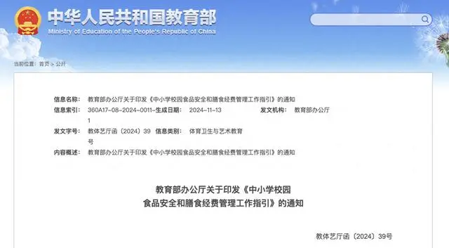 2024-11-25 09:07:59閱讀()微言教育為切實加強中小學(xué)校園食品安全和膳食經(jīng)費管理,近日,教育部印發(fā)了《中小學(xué)校園食品安全和膳食經(jīng)費管理工作指引》(以下簡稱《指引》),聚焦校園餐關(guān)鍵領(lǐng)域和薄弱環(huán)節(jié),細化操作流程和規(guī)范標(biāo)準(zhǔn),進一步提升校園食品安全和膳食經(jīng)費管理規(guī)范化、精細化、科學(xué)化水平。