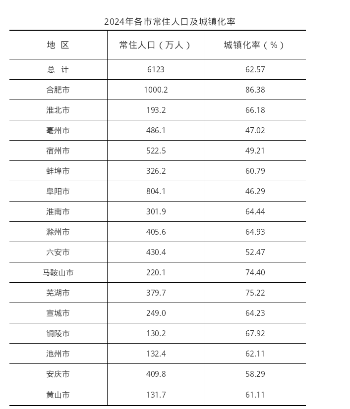 ?2024年末安徽省常住人口6123萬人,合肥市人口超千萬