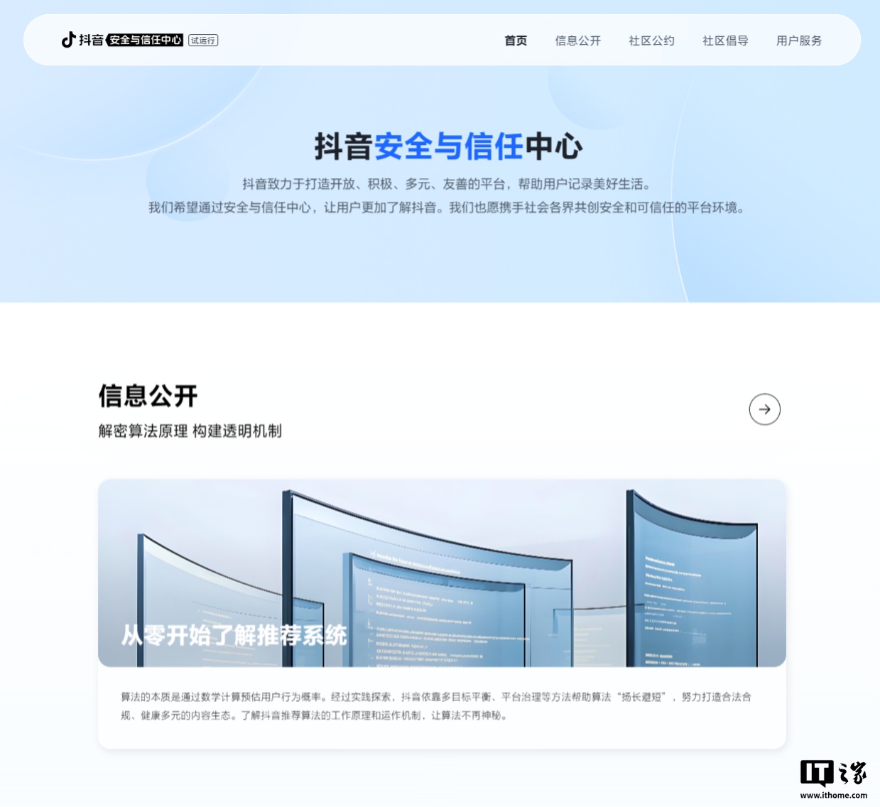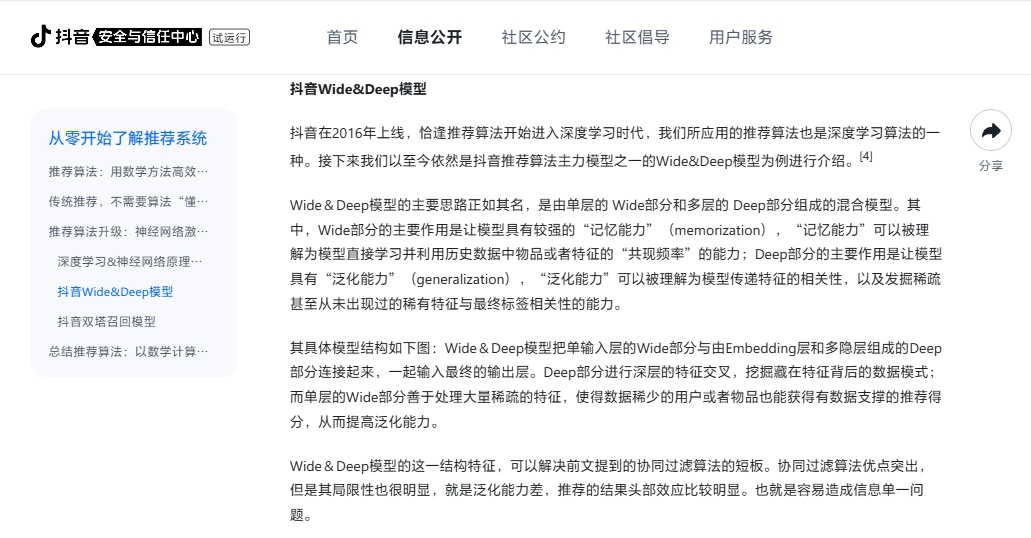 2025-03-30 20:07:23閱讀()互聯(lián)網(wǎng)3月30日消息,抖音總裁韓尚佑今日宣布,“抖音安全與信任中心”網(wǎng)站上線。網(wǎng)站首次公開抖音推薦算法原理,介紹其推薦算法如何預(yù)估用戶行為概率,并通過多目標(biāo)建模等方式實現(xiàn)更優(yōu)質(zhì)、豐富的內(nèi)容推薦,而算法需由平臺治理體系對其進(jìn)行約束和規(guī)范。