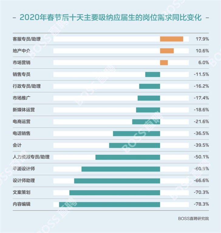 此外,據(jù) BOSS 直聘發(fā)布的《 2020 年春節(jié)后 10 天人才趨勢(shì)觀察》顯示,2 月 3 日至 2 月 12 日期間,處于"生死邊緣"的小微企業(yè)對(duì)于招聘人才的需求驟減 70% 。