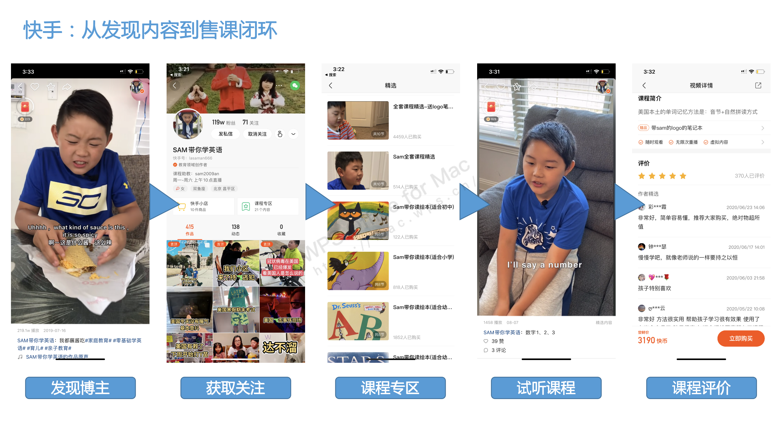 短視頻降低教育內(nèi)容創(chuàng)作門檻,幫助個(gè)體賦能??焓稚弦晃荒陜H9歲的小學(xué)生網(wǎng)紅SAM,通過情景英語教學(xué)吸引大量粉絲,并在快手課程中上傳了自己閱讀兒童繪本的音頻,面向幼兒到初中生,售價(jià)幾十到幾百元不等。微博、小紅書等平臺上,各領(lǐng)域KOL也形成了粉絲經(jīng)濟(jì),玩偶圈改妝大神二十天教學(xué)課程高達(dá)38000元,依然供不應(yīng)求。