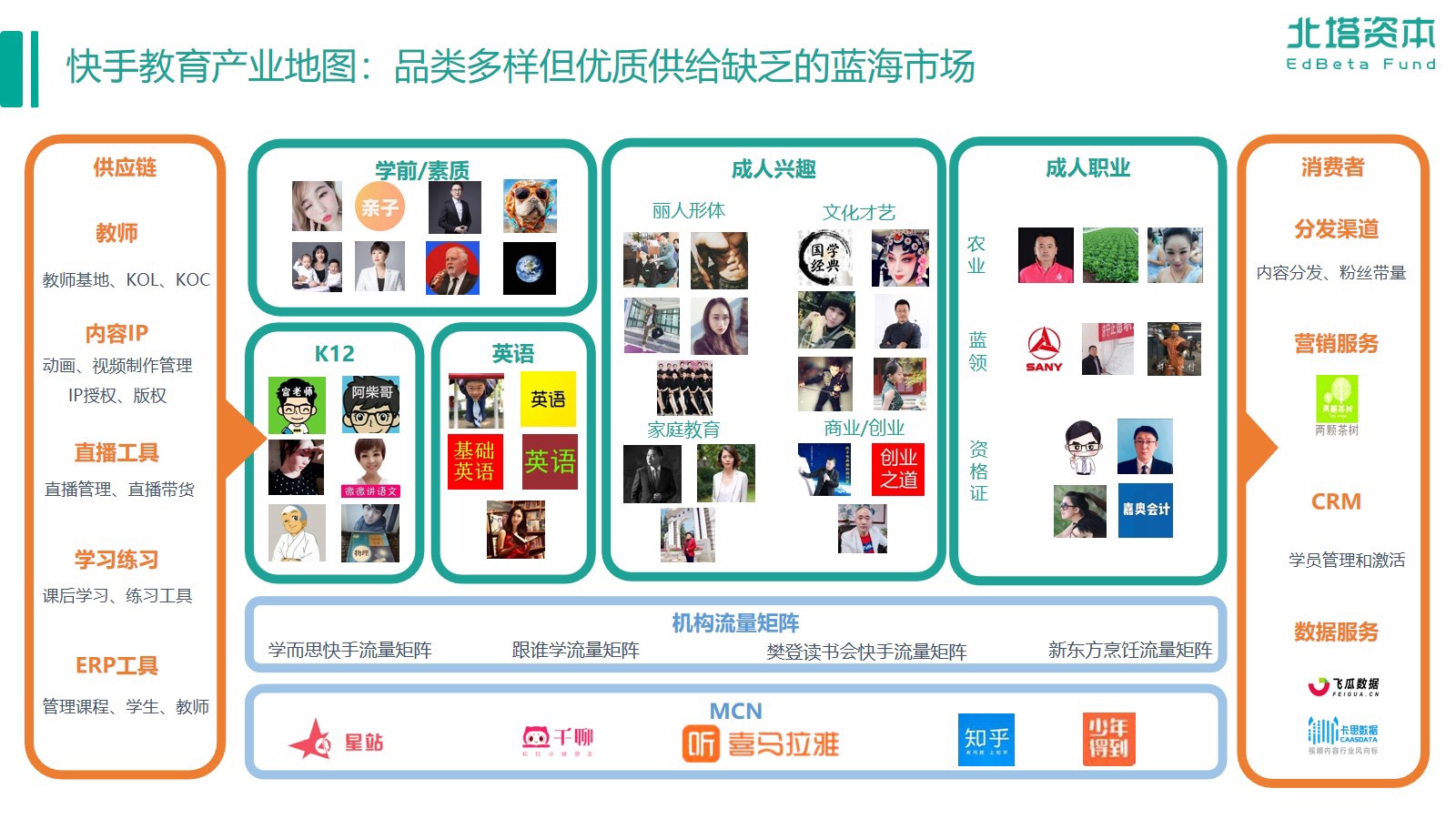 短視頻流量和內(nèi)容創(chuàng)作工具賦能,讓傳統(tǒng)教育機(jī)構(gòu)沒能滿足的低價(jià)、小眾學(xué)習(xí)需求,在斜杠青年們興起后成為了可能。對于泛娛樂教育內(nèi)容來說,平臺的定位并不一定是自主研發(fā),低價(jià)化、娛樂化、多元化的連接平臺也有存在必然性,目前快手已實(shí)現(xiàn)了從發(fā)現(xiàn)內(nèi)容到線上授課的基本閉環(huán)。