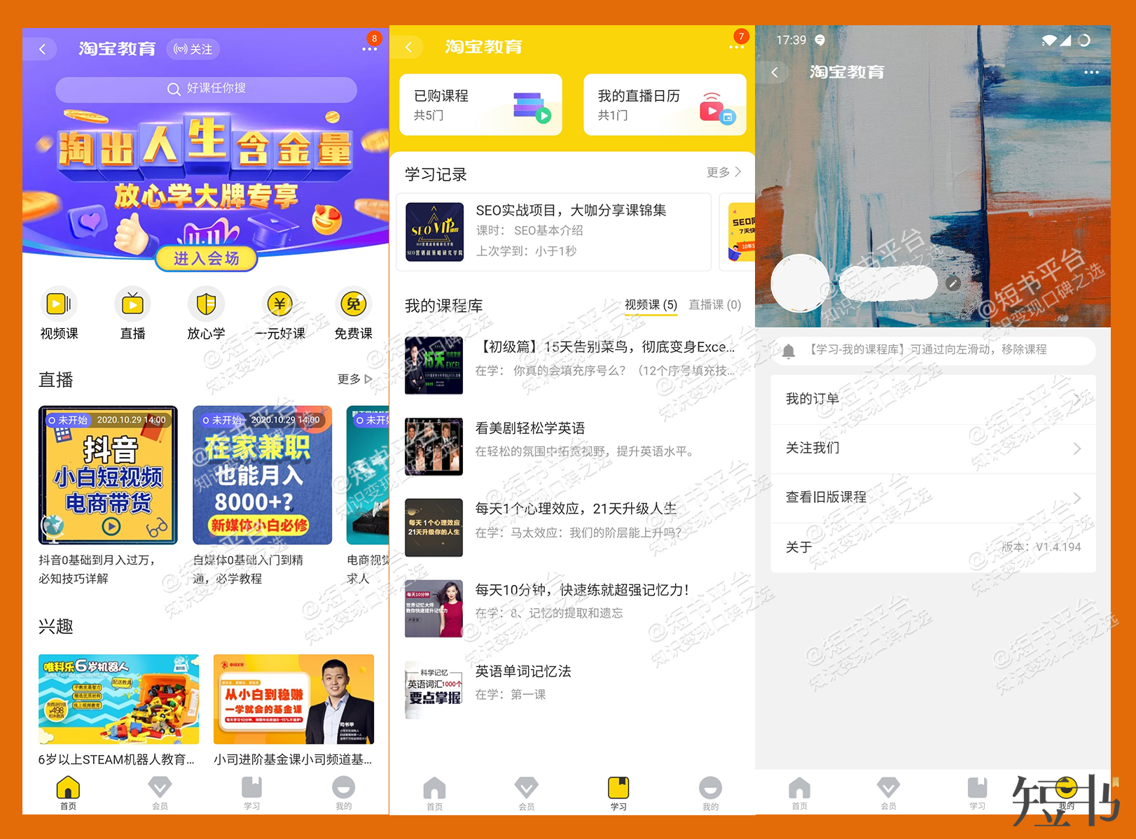 而淘寶目前的產(chǎn)品形態(tài)對比市面類似“短書”“小鵝通”教育SaaS產(chǎn)品,后者可能更加適合教育場景。后者的產(chǎn)品形態(tài)可以兼顧到整個學(xué)員的生命周期:直播、課程、社群、專欄、訓(xùn)練營等內(nèi)容和服務(wù)形態(tài)更加的完善,深入到更加的垂直領(lǐng)域的場景。