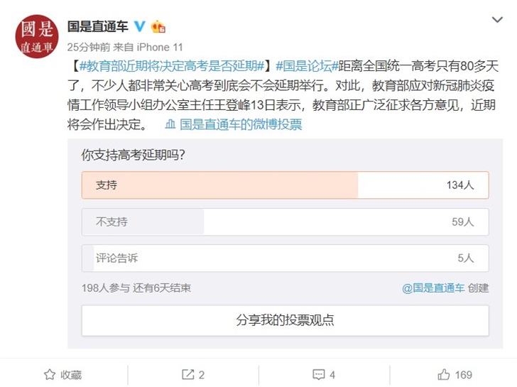 2020-03-14 23:17:54閱讀()教育部3月14日消息 據(jù)國(guó)是直通車(chē)消息,距離全國(guó)統(tǒng)一高考只有80多天了,不少人都非常關(guān)心高考到底會(huì)不會(huì)延期舉行。對(duì)此,教育部應(yīng)對(duì)新冠肺炎疫情工作領(lǐng)導(dǎo)小組辦公室主任王登峰13日表示,教育部正廣泛征求各方意見(jiàn),近期將會(huì)作出決定。