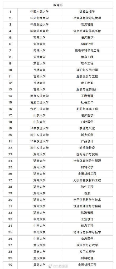 2021-03-02 09:06:30閱讀()人民網(wǎng)3月1日,教育部公布2020年度普通高等學(xué)校本科專業(yè)備案和審批結(jié)果,根據(jù)高等學(xué)校專業(yè)設(shè)置與教學(xué)指導(dǎo)委員會評議結(jié)果,共撤銷中國人民大學(xué)編輯出版學(xué)、中央財經(jīng)大學(xué)物流管理、南開大學(xué)臨床醫(yī)學(xué)等518個本科專業(yè)。被撤銷專業(yè)全名單轉(zhuǎn)發(fā)周知!