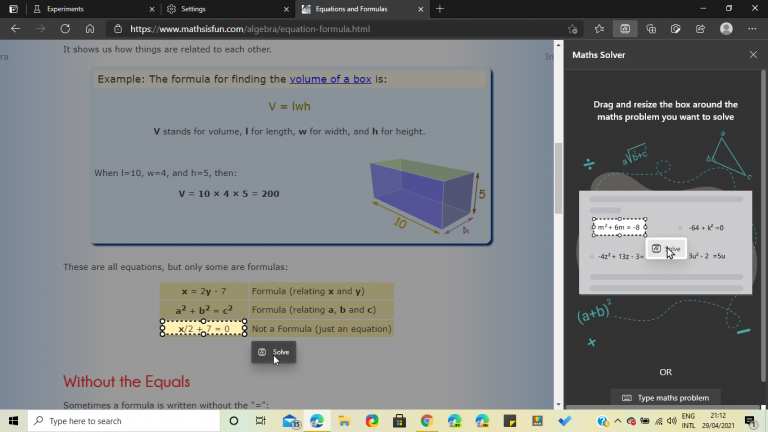 2021-04-30 11:58:54閱讀()互聯(lián)網(wǎng)4月30日消息上個月,微軟在其Edge瀏覽器中宣布了一項新的“MathSolver”(數(shù)學求解器)功能,可以幫助用戶解決數(shù)學問題。最近幾周在Canary頻道內測試該功能后,微軟終于將MathSolver帶給了運行穩(wěn)定版Edge瀏覽器的用戶。