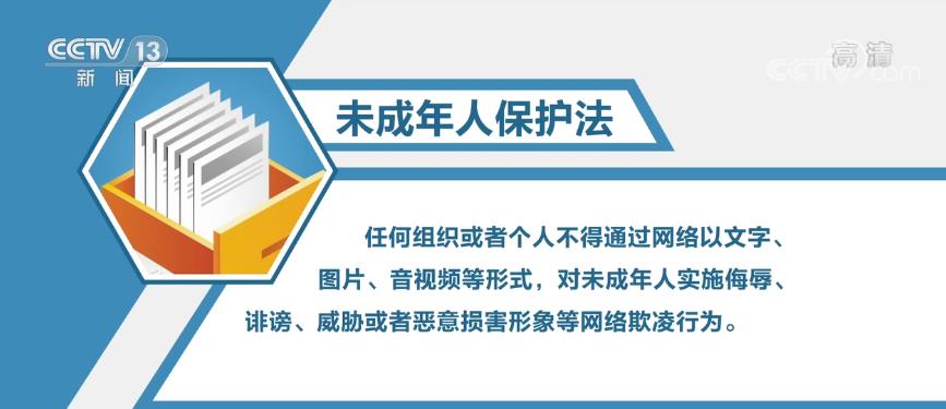 新修訂的未成年人保護法規(guī)定:任何組織或者個人不得通過網(wǎng)絡(luò)以文字、圖片、音視頻等形式,對未成年人實施侮辱、誹謗、威脅或者惡意損害形象等網(wǎng)絡(luò)欺凌行為。