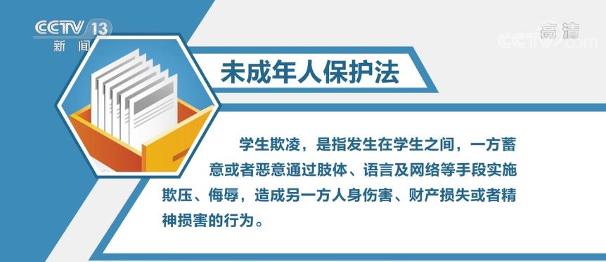 新修訂的未成年人保護法明確:學(xué)生欺凌,是指發(fā)生在學(xué)生之間,一方蓄意或者惡意通過肢體、語言及網(wǎng)絡(luò)等手段實施欺壓、侮辱,造成另一方人身傷害、財產(chǎn)損失或者精神損害的行為。