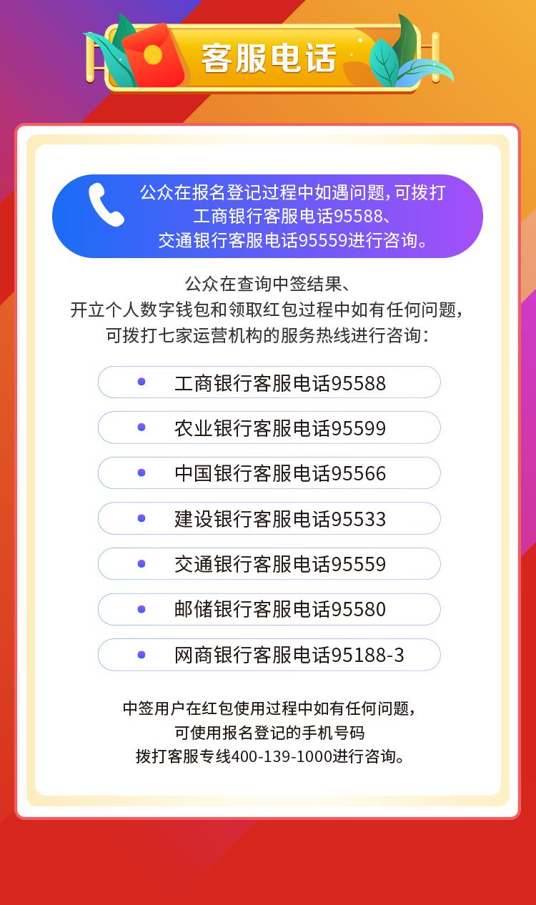 答:只有中簽的用戶才能成功領取55元數(shù)字人民幣紅包。中簽用戶的數(shù)字人民幣紅包將直接發(fā)放至其報名時選擇的運營機構開立的個人數(shù)字錢包中,如您已中簽,請及時查看報名時選擇的運營機構開立的個人數(shù)字錢包。