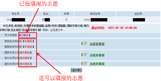 下圖以藝術(shù)類考生填報(bào)為例(志愿數(shù)量僅為示例):